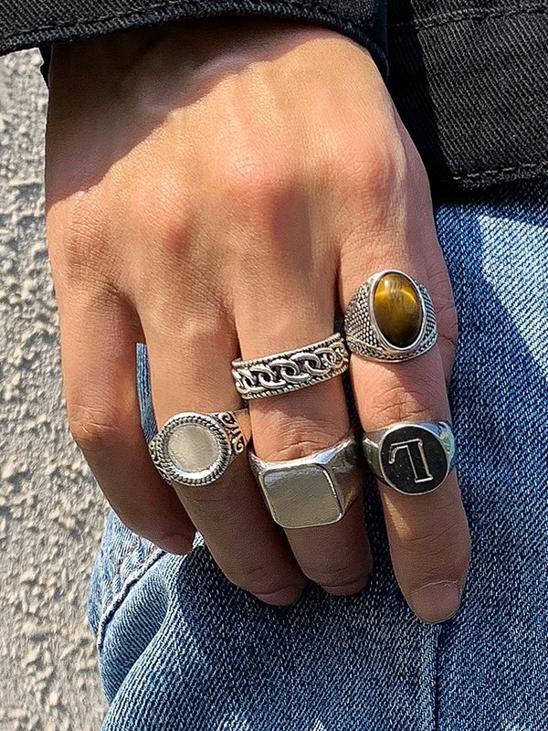 5-teiliges Dome-Ring-Set für Herren