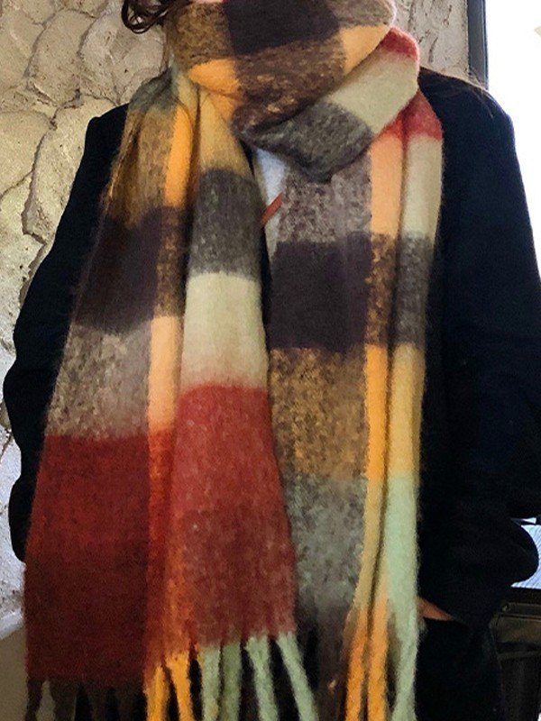 Bunter karierter Schal mit Fransen