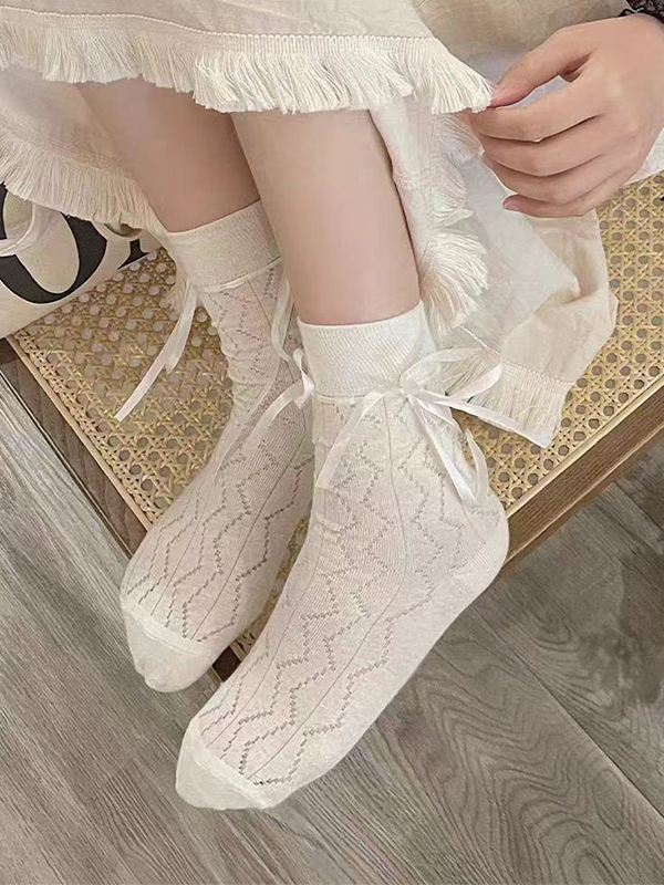 Bow Decor Ausschnitt Spitzensocken
