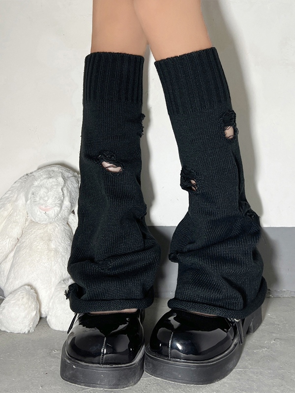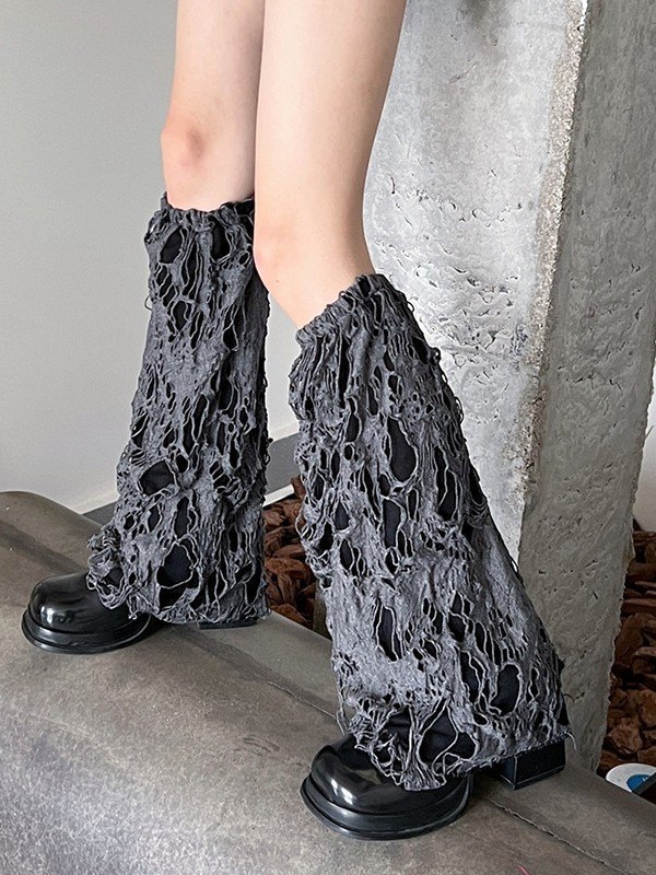 Einfarbige Distressed Y2K Beinwärmer