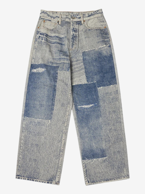 Jeans im Retro-Look mit Patchwork-Print