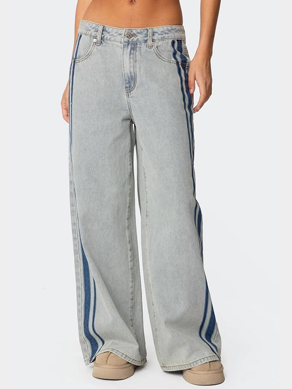Ausgewaschene Schlagjeans mit Retro-Print