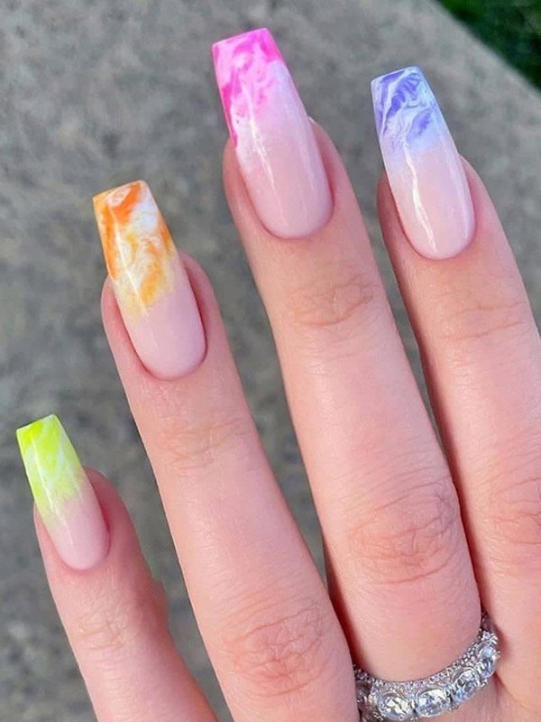 24 Stück Fleckregenbogen Lange Kunstnägel