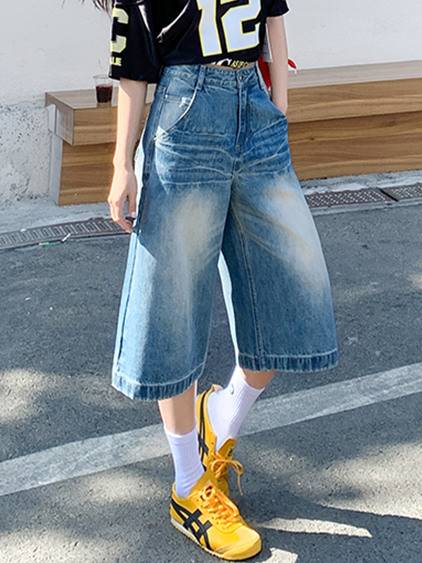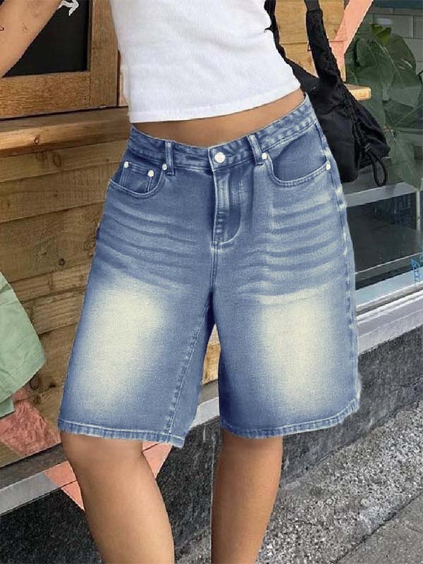 Vintage Washed Aged Denim Shorts