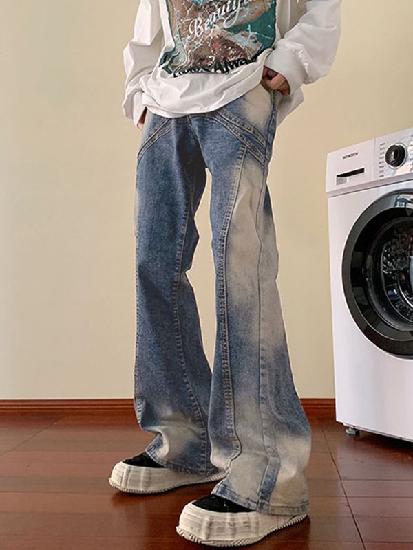 Schlagjeans mit Print-Waschung