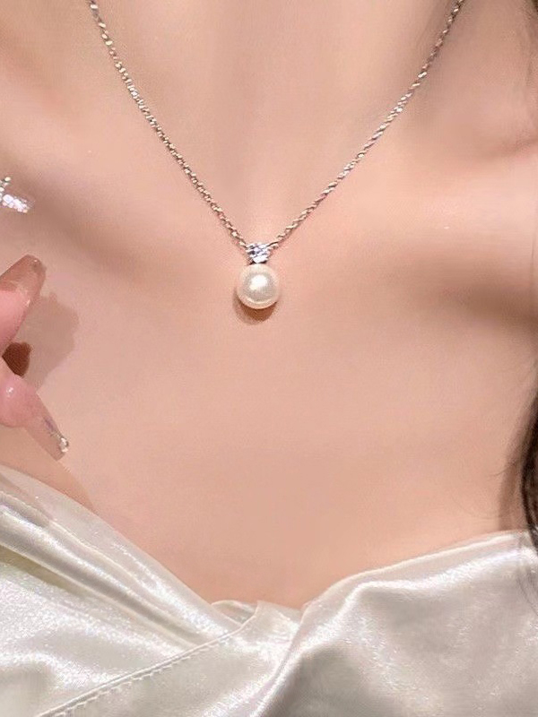 Halskette mit Perlen-Diamant-Anhänger