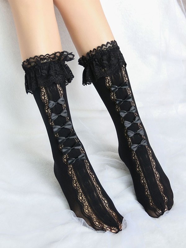 Bow Decor Ausschnitt Spitzensocken