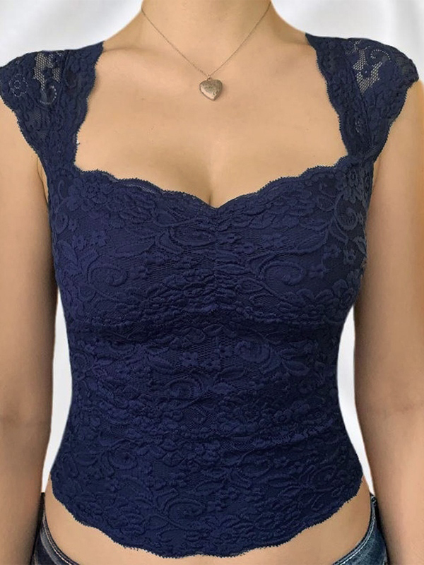 Schmales Kurzarm-T-Shirt aus Spitze