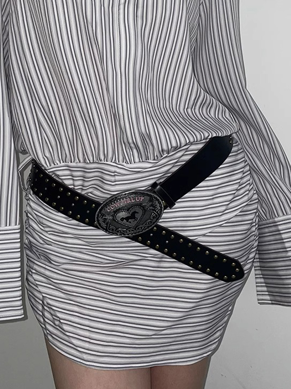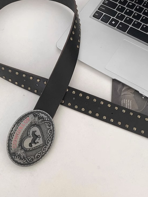Gürtel mit Grunge-Nietendekor und gravierter Schnalle