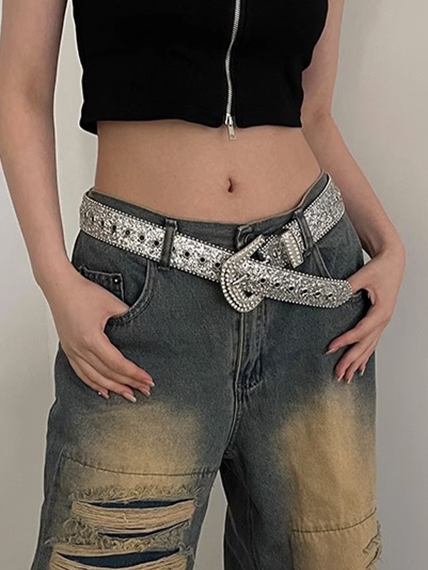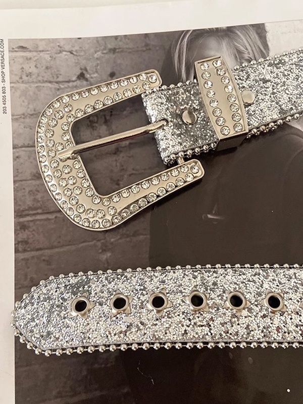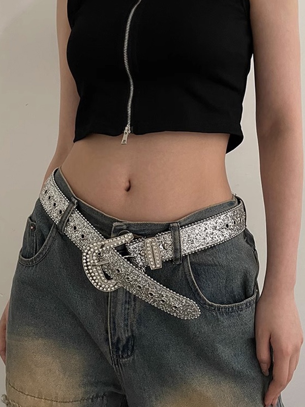 Y2K Pailletten Strass Schnallengürtel
