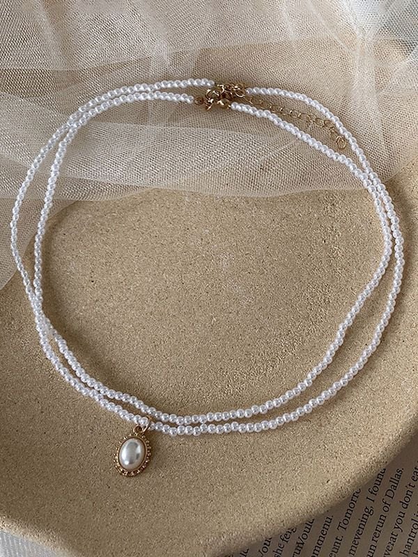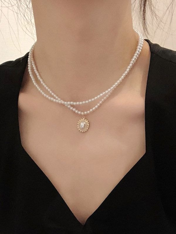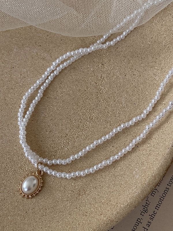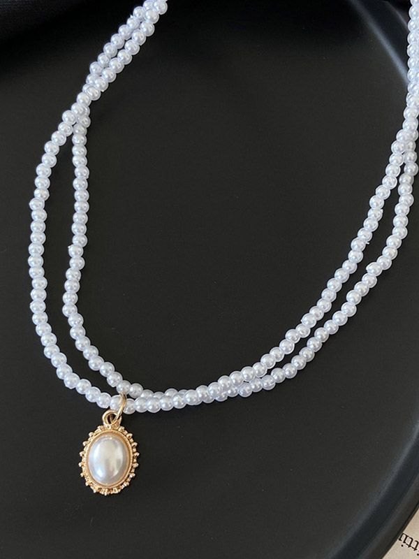 Doppellagige Halskette mit Faux-Perlenanhänger