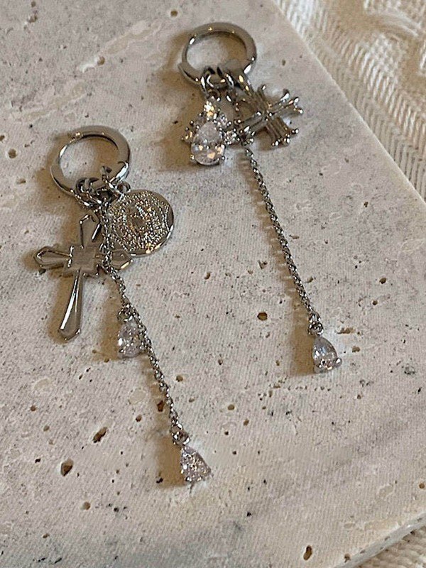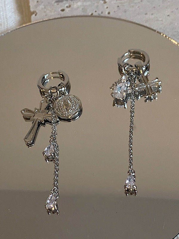Kreuz Anhänger Zirkon Quaste Creolen