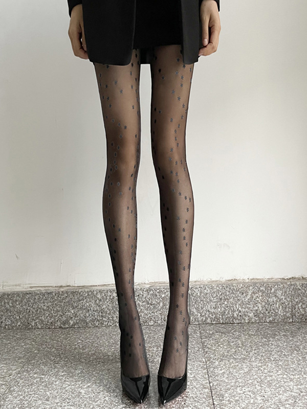 Durchsichtige schwarze Strumpfhose mit Sternenmuster