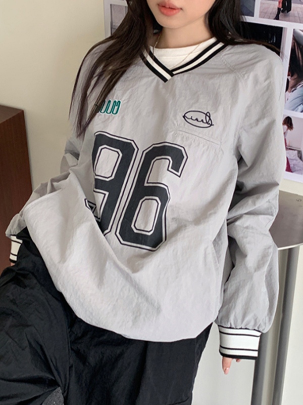 Einzigartiges Design: Dieses Sweatshirt zeichnet sich durch seinen Vintage-Nummerndruck und das Streifenbesatzdesign aus und verleiht Ihrem Look einen Hauch von Preppy-Stil.