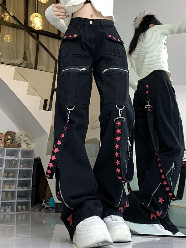 Schreibe die erste Bewertung für „Cargo-Jeans mit kontrastfarbenem Band und Metallverzierung“