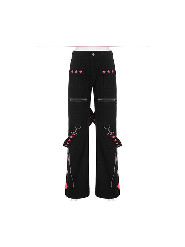Cargo-Jeans mit kontrastfarbenem Band und Metallverzierung