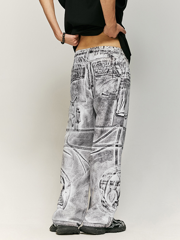 Schwere Jeans mit strukturiertem Druck in Schwarz und Grau