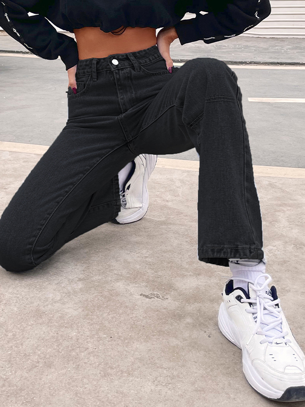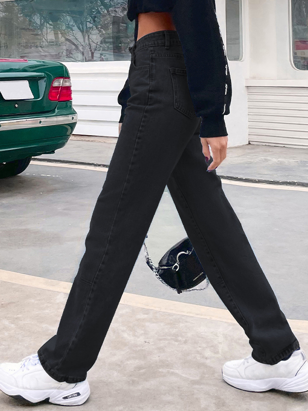 Stylische schwarze Straight Boyfriend Jeans