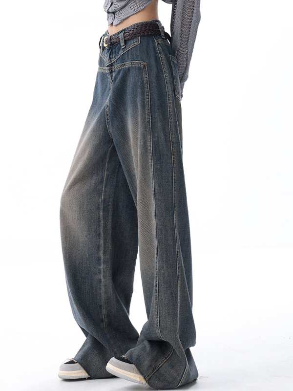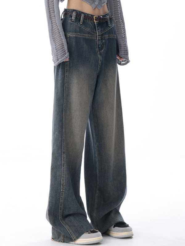 Verwaschene Jeans mit weitem Bein und Raw Edge-Details