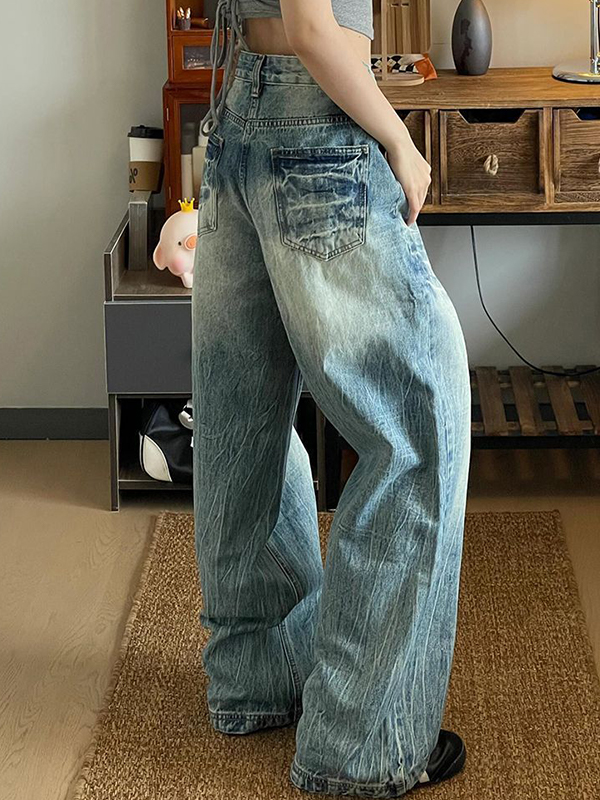 Wasserwaschende, alternde Boyfriendjeans im amerikanischen Stil