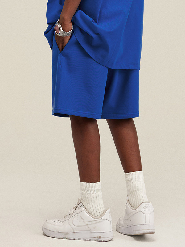 Diese blauen Shorts lassen sich wunderbar mit einem passenden übergroßen T-Shirt im gleichen Farbton kombinieren, was ein schickes, einfarbiges Ensemble ergibt, das mühelosen Stil und Zusammenhalt ausstrahlt. Das Hinzufügen von strahlend weißen Socken und Sneakers führt ein kontrastierendes Element ein, verleiht eine verspielte Note und verstärkt den insgesamt lässigen Charme des Outfits weiter.