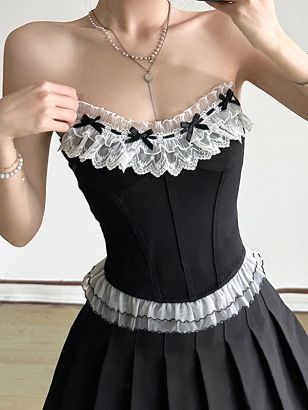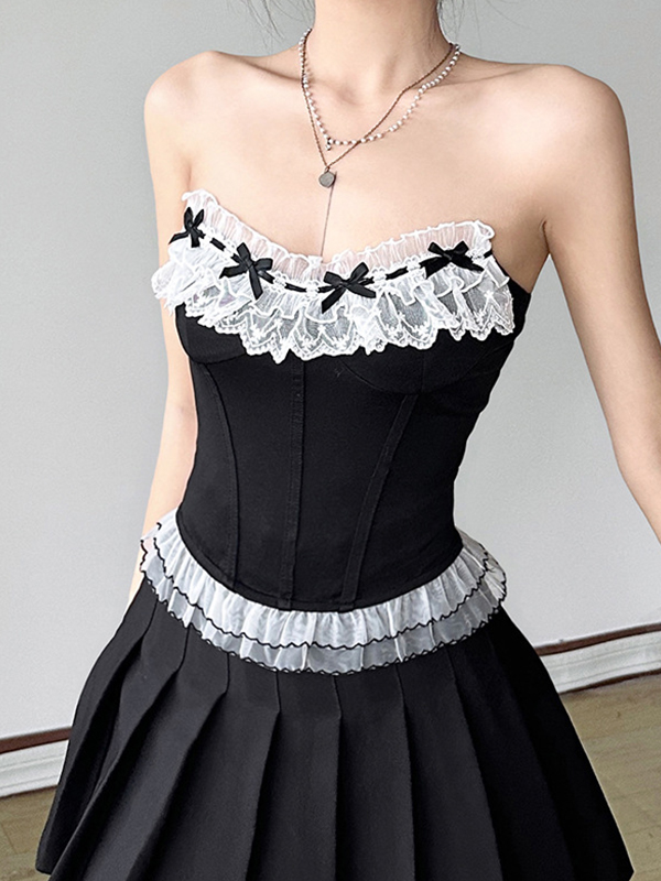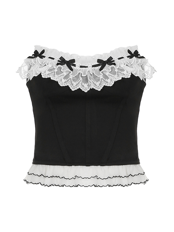 Bandeau-Top mit Spitzeneinfädelung und Schleife