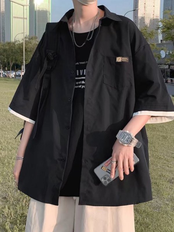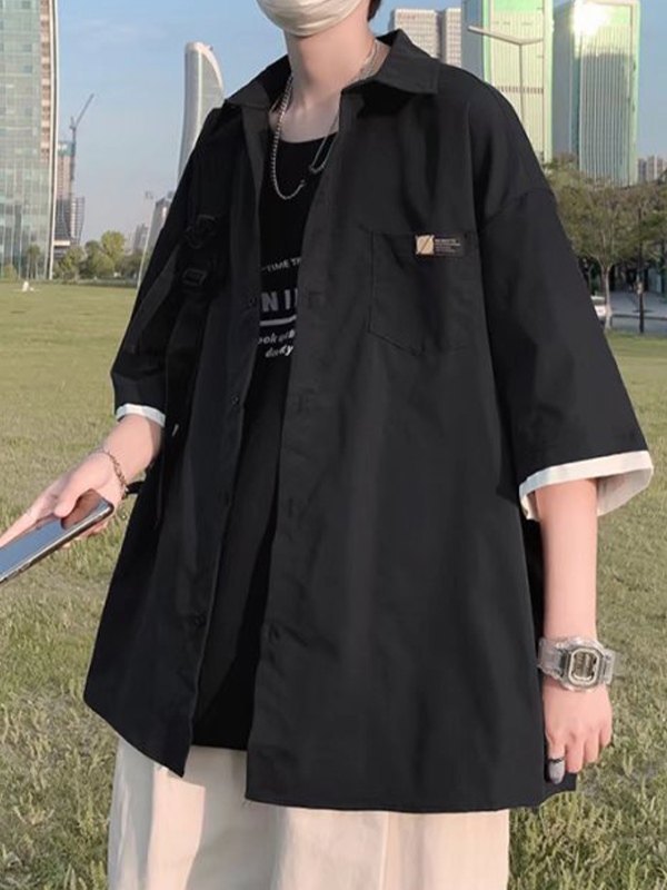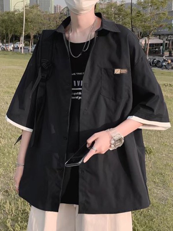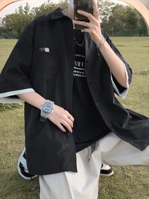 Schreibe die erste Bewertung für „Kurzärmliges Patchwork-Hemd für Herren mit Knöpfen“