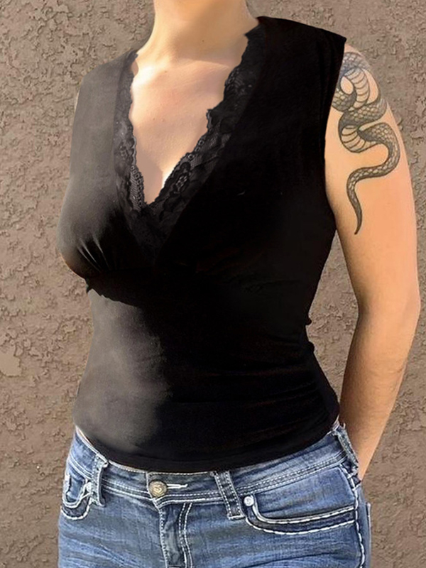 Schreibe die erste Bewertung für „Tanktop mit V-Ausschnitt und Spitzen-Patchwork“