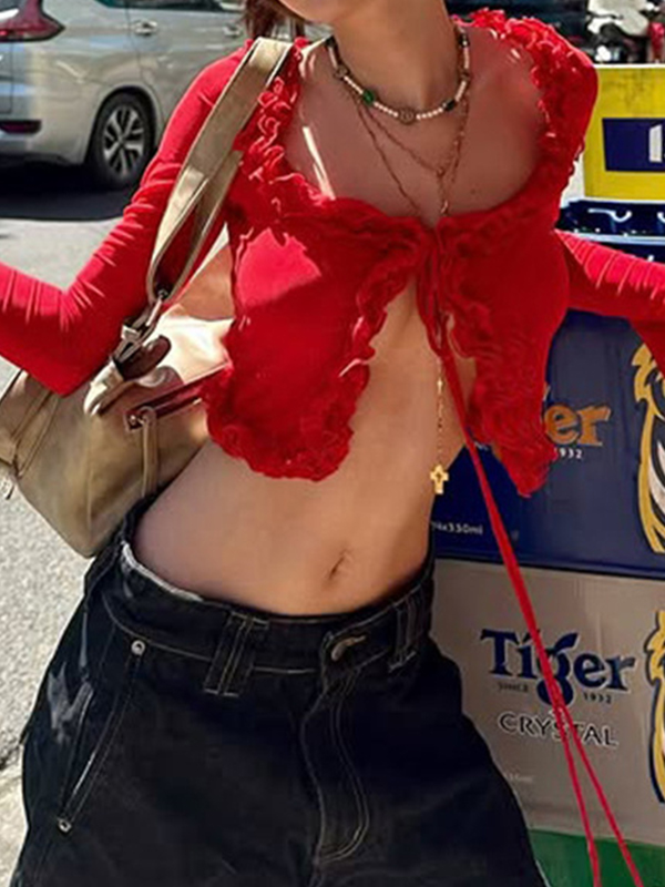 Schreibe die erste Bewertung für „Langärmliges T-Shirt mit ausgestellten Ärmeln und Schnürung“