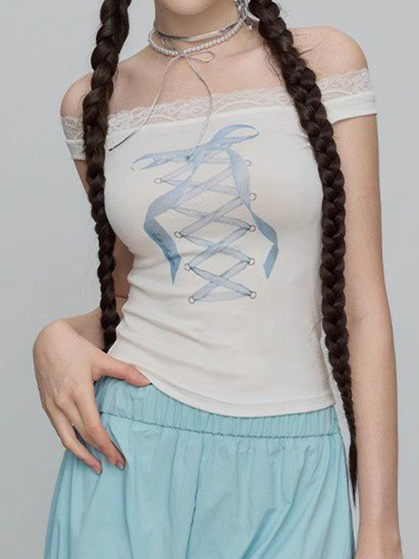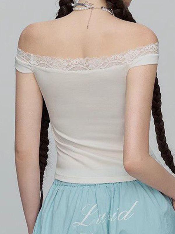 One-Shoulder-T-Shirt mit kurzen Ärmeln aus Spitze